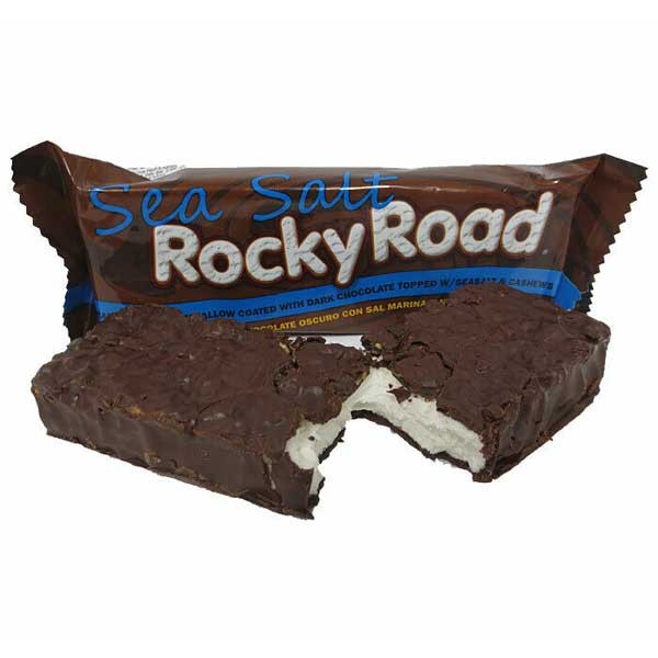 Håndlavede og luftige vanilje-skumfiduser med en afrunding af drys med smag af havsalt og nyristede cashewnødder og rullet ind i udsøgt mørk chokolade. Hvis du kan lide den vedkommende smag af Rocky Road-is smag, så skal du helt sikkert prøve Annabelles Rock Road-chokoladebarer!