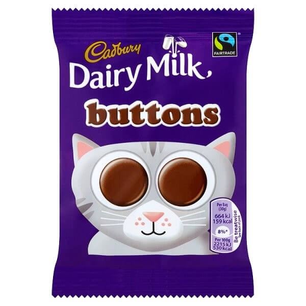 En bestemt yndling blandt både børn og voksne er Cadbury Milk Buttons, som er en uimodståelig chokoladesnack. De er lavet med kvalitets Fairtrade-kakao fra etiske kilder og Cadburys ikoniske "Et glas og et halvt-mælk."