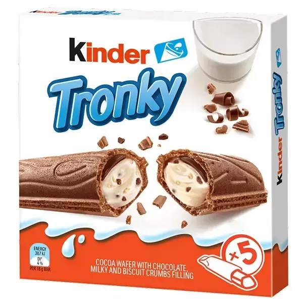 Kinder Tronky – krispigt kakaovåffelskal fyllt med len mjölkkräm och kaksmulor. En himmelsk godbit!