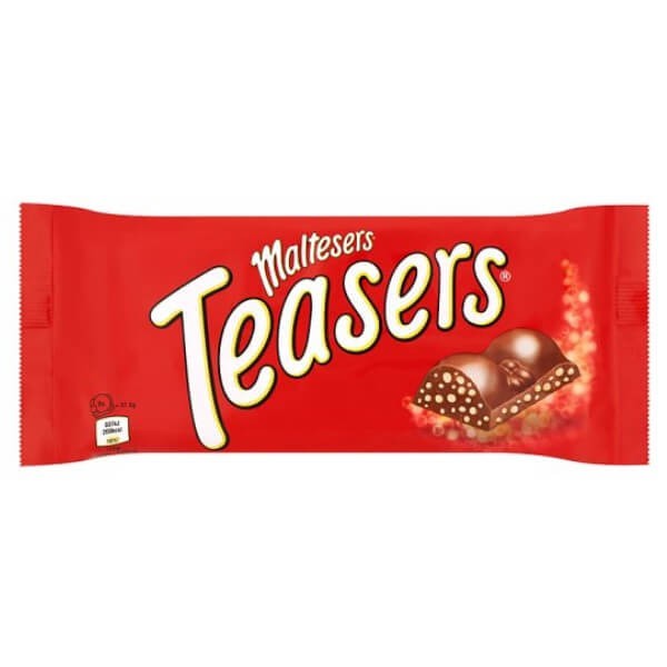 Hvis du elsker Maltesers, vil du elske denne nye Maltesers Teasers chokoladeplade. Maltesers Teasers er en solid mælkechokoladebar med knasende små stykker af Maltesers bikage, der flyder igennem. Det er Maltesers, der ikke ruller væk.
