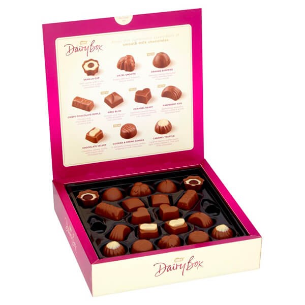 Ingredienser: sukker, kakaosmør, vegetabilske fedtstoffer (palme, shea), skummetMÆLKspulver, SØDMÆLKspulver, MÆLK, kakaomasse, laktose og proteiner fra valle (fra MÆLK), vallepulver (fra MÆLK), MÆLKefedt, glukosesirup, sprøde kornstykker: (HVEDEmel, sukker, maltet BYGemel, hævemidler: (E500i), aromaer, salt), stabilisatorer: E420, fedtreduceret kakaopulver, emulgator (solsikkelecithin), cookie stykker (sukker, kokosfedt, glukosesirup, kakaopulver, HVEDEmel, valle protein (fra MÆLK)), sprøde vafflerstykker: (sukker, HVEDEmel, smør (fra MÆLK), skummetMÆLKspulver, maltet BYGemel, salt), aromaer, stabilisator (invertase), surhedsregulerende middel: E330, farvestof (karminsyre). MÆLKechokolade indeholder minimum 18% MÆLKefaststoffer.