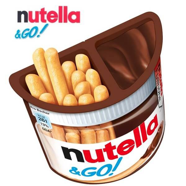 For dem der gerne vil nyde at være på farten mens, de spiser Nutella - prøv Ferrero Nutella & GO! Kombinationen af sprøde kiksestænger og den populære Nutella er en ny, unik dyppe-snack. Hjemme: brød og Nutella, på farten: Nutella & GO! Nyd den lækre smag af Nutella når som helst, hvor som helst. Snup den med i tasken, og med et snuptag kan du åbne for de lækre sprøde brødstænger og dyppe dem i den skønne Nutella. Ethvert barn og voksen kender glasset med den bløde brune hasselnøddecreme med kakaosmag, og nu kan du nemt tage det med dig