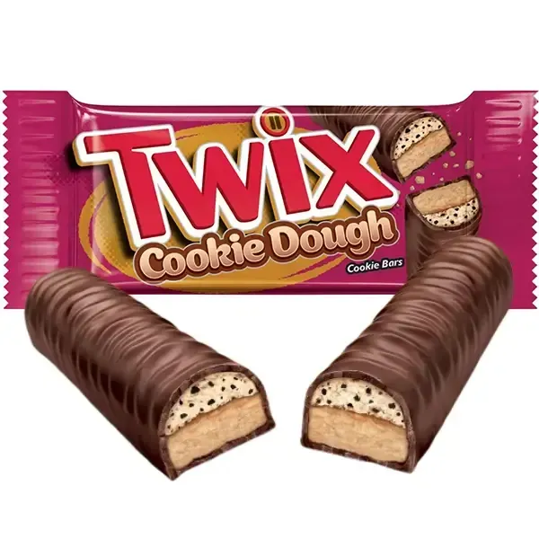 TWIX Cookie Dough bjuder på en helt ny godisupplevelse med sin mix av texturer och smaker. Basen av spröd kex kompletteras med ett lager av krämig cookie dough-smakande fyllning, toppad med kakbitar och omsluten av len mjölkchoklad. En nostalgisk och nyskapande twist på den älskade TWIX-baren – perfekt för dig som älskar kakdeg, choklad och crunch i varje tugga.