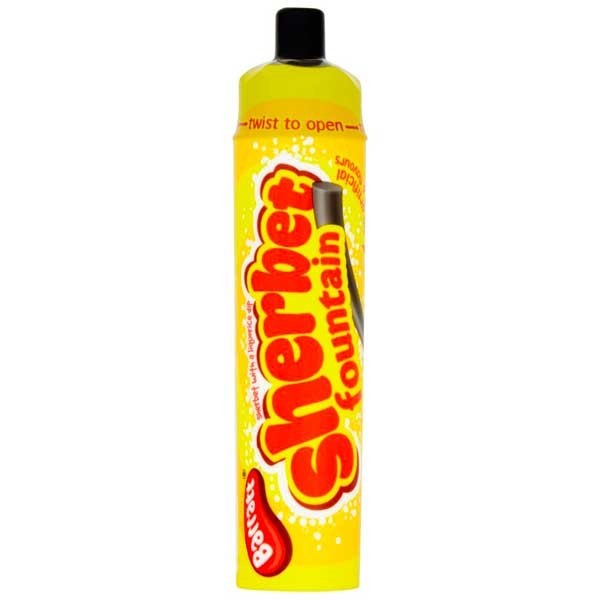 Barratt Sherbet Fountains, en favorit blandt skolebørn siden 1925, ændrede for nylig deres indpakning - det populære kartonrør blev erstattet af et plastikrør. Gru og Rædsel!! Gudskelov forbliver smagen af Candyland Sherbet Fountains den samme, alt imens designet på plastikrøret appellerer til en ny generation af børn.
