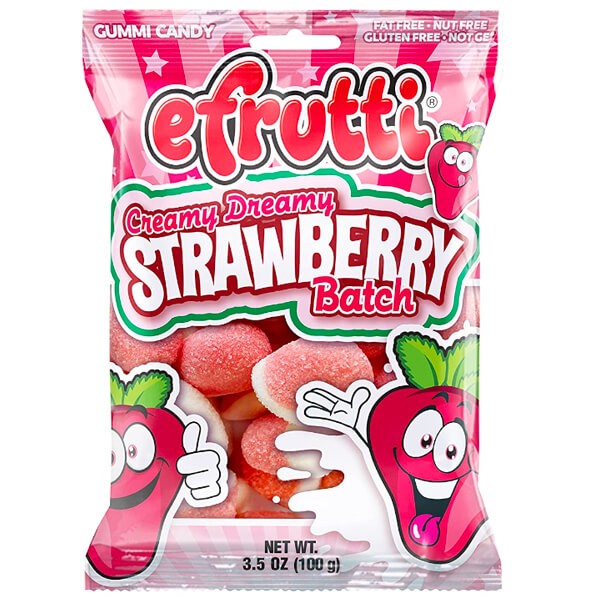 Ingredienser: glukosesirup, sukker, gelatine, surhedsregulerende middel: E330, E270; stabilisatorer: E440, kunstige aromastoffer, jordbærjuice koncentrat, farvestoffer: E120.
