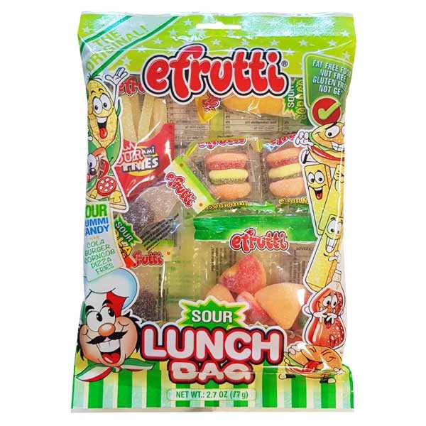 Den her frokostpose indeholder alt, hvad du har brug for for at få et gennemført måltid: En vingummipizza, to mini-burgere, en hotdog, en omgang Sour Gummi Fries og to colaflasker. Man kan dele posen eller spise den i smug! Uanset hvordan du vælger at spise det hele, så kan du klare dig uden kantinemad med den her pose.