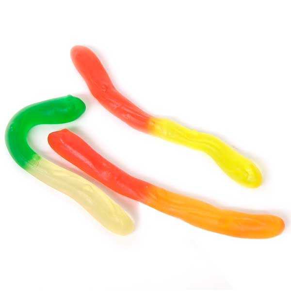 To-farvede vingumi-klapperslanger i smagsvarianterne: Citron, appelsin, ananas, hindbær og jordbær, som gør det til en perfekt snakt når som helst på dagen. Vingummiorme ses ofte i staterne. Haribo Rattle Snakes vingummislik er lidt mere unikt, men vil helt sikkert glæde selv den mest loyale fan af vingummiorme.