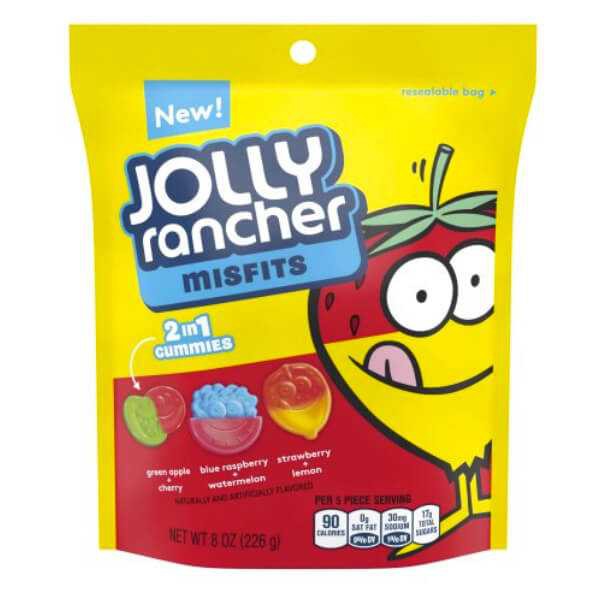 To af de fire, modige frugtsmage fra JOLLY RANCHER most sammen til et enkelt stykke slik – med tre forskellige smagskombinationer! Prøv den lækre smag af grønt æble og kirsebær, blåt hindbær og vandmelon eller jordbær og citron. Disse skønne freak-shows præsenterer mærkelige former og unikke smagskombinationer, som vil overraske og begejstre dine smagsløg ved hver eneste bid.