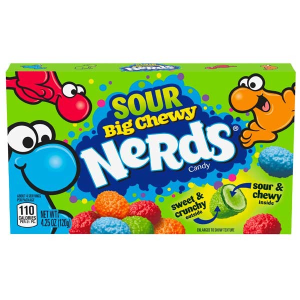 Fornøj dine sanser og smagsløg med nye Big Sour Chewy Nerds. Nu kan du have en forsyning af dine yndlings, knasende slikstykker i hånden, i dit køkken eller dit kontor. Disse søde lækkerier vil få dig til at smile af begejstring, når du smager deres knasende og lækre konsistens og frugtige smage.