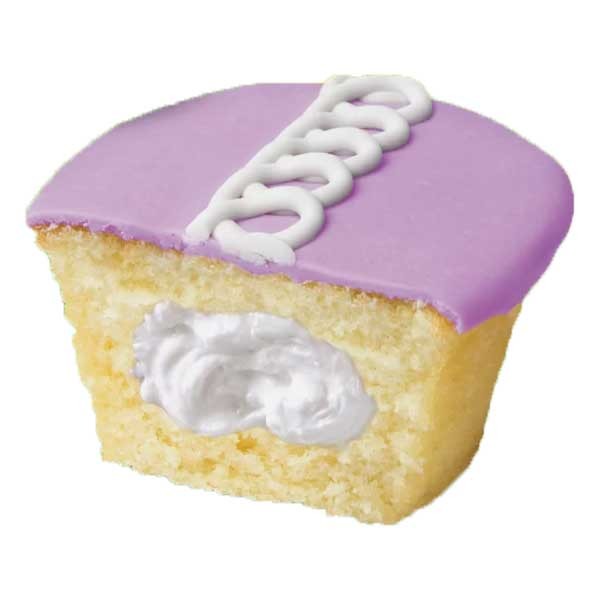 Gule cupcakes med en cremet midte. Disse cupcakes, der er lavet i et begrænset omfang, har den umiskendelige krusedulle-overflade på en lilla kage med et velsmagende indre af vanilje. Hvis det at elske cupcakes er forkert, hvem har så lyst til at følge den rette sti?