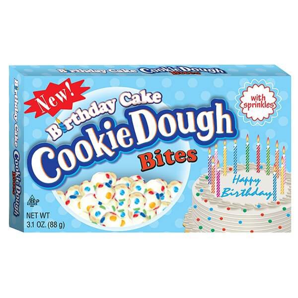 Birthday Cake Cookie Dough Bites indeholder cremet glasur og lækkert, farverigt drys ud over en blød cupcake. Dette nye vidunder er lavet af Cookie Dough Bites-producenten. I en vidunderlig farverig og skæg biografæske.