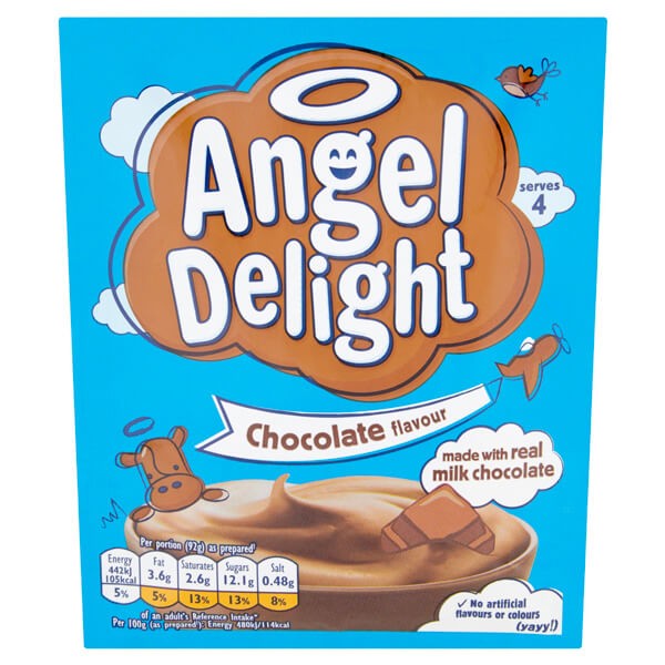 Ingredienser: sukker, modificeret stivelse, palmeolie, fedtreduceret kakaopulver, surhedsregulerende middel: E339, E450, emulgatorer: E477, lecithiner, MÆLKechokolade pulver (2%) (sukker, kakaomasse, SØDMÆLKspulver, kakaosmør, skummetMÆLKspulver), LAKTOSE (MÆLK), MÆLKeproteiner, farvestoffer: E150a,E160a), vallepulver (MÆLK), farvestoffer: E170, antiklumpningsmiddel: E551, aromaer.