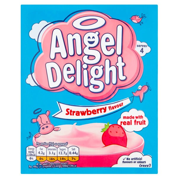 Ingredienser: sukker, palmeolie, modificeret stivelse, emulgator (E477, lecithiner), surhedsregulerende middel: E339, diphosphates), LAKTOSE (MÆLK), MÆLKeproteiner, jordbær pulver (2%), vallepulver (MÆLK), farvestoffer: E170, antiklumpningsmiddel: E551, farvestoffer: E162, E160a, aromaer.