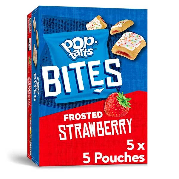 Mundrette Pop-Tarts, der er fyldt med lækker smag af jordbær og sød glasur samt knasende flager på toppen. Det er en miniversion af dine yndlings Pop-Tarts Toaster Pastries. Velegnede til morgenmaden og som snack på farten. Et perfekt måltid, når man er på tur. Den er faktisk perfekt, hvornår du end har lyst til en snack. Gennembagte små mini Pop-Tarts, der er klar til at spise.